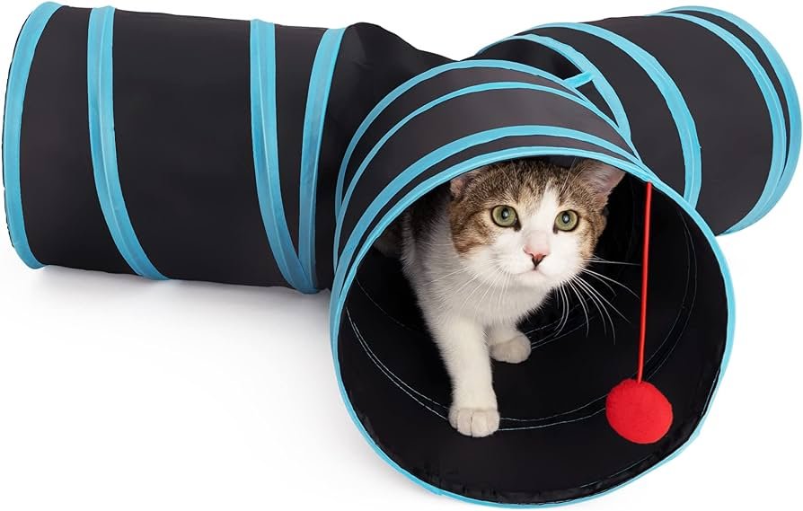*- Prosper Pet Cat Tunnel*: This cat tunnel toy impresses with its S-shape design and peek-a-boo holes, guaranteed to keep your cat engaged for hours on end. Plus, it collapses for easy storage.